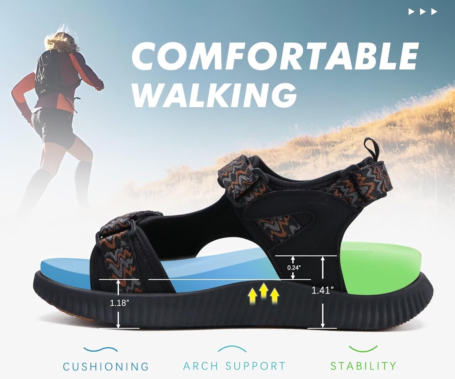 Customers appreciate the sandals for their comfort, arch support, and fit. They find the sole soft yet supportive, the straps offer more ankle support, and the toe box wide. Many praise the attractive look and color options. The sandals are described as excellent quality, worth the money, and durable.