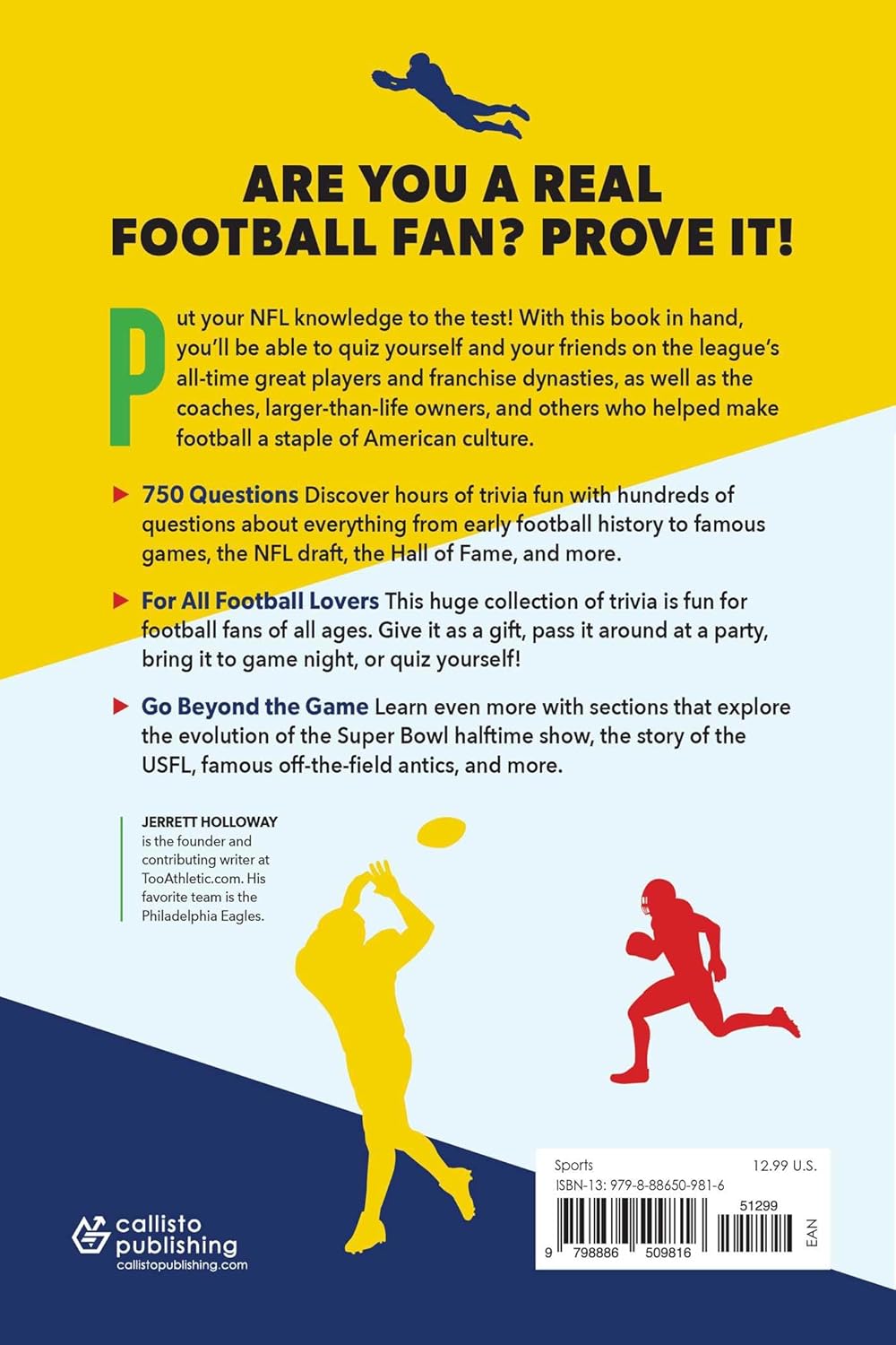750 questions―Discover hours of sports trivia fun with hundreds of questions about everything from early football history to famous games, the NFL draft, the Hall of Fame, and more.For all football lovers―This football trivia book is for football fans of all ages. Give it as a gift, pass it around at a party, bring it to game night, or quiz yourself!Go beyond the game―Learn even more with sections that explore the evolution of the Super Bowl halftime show, the story of the USFL, famous off-the-field antics, and more.