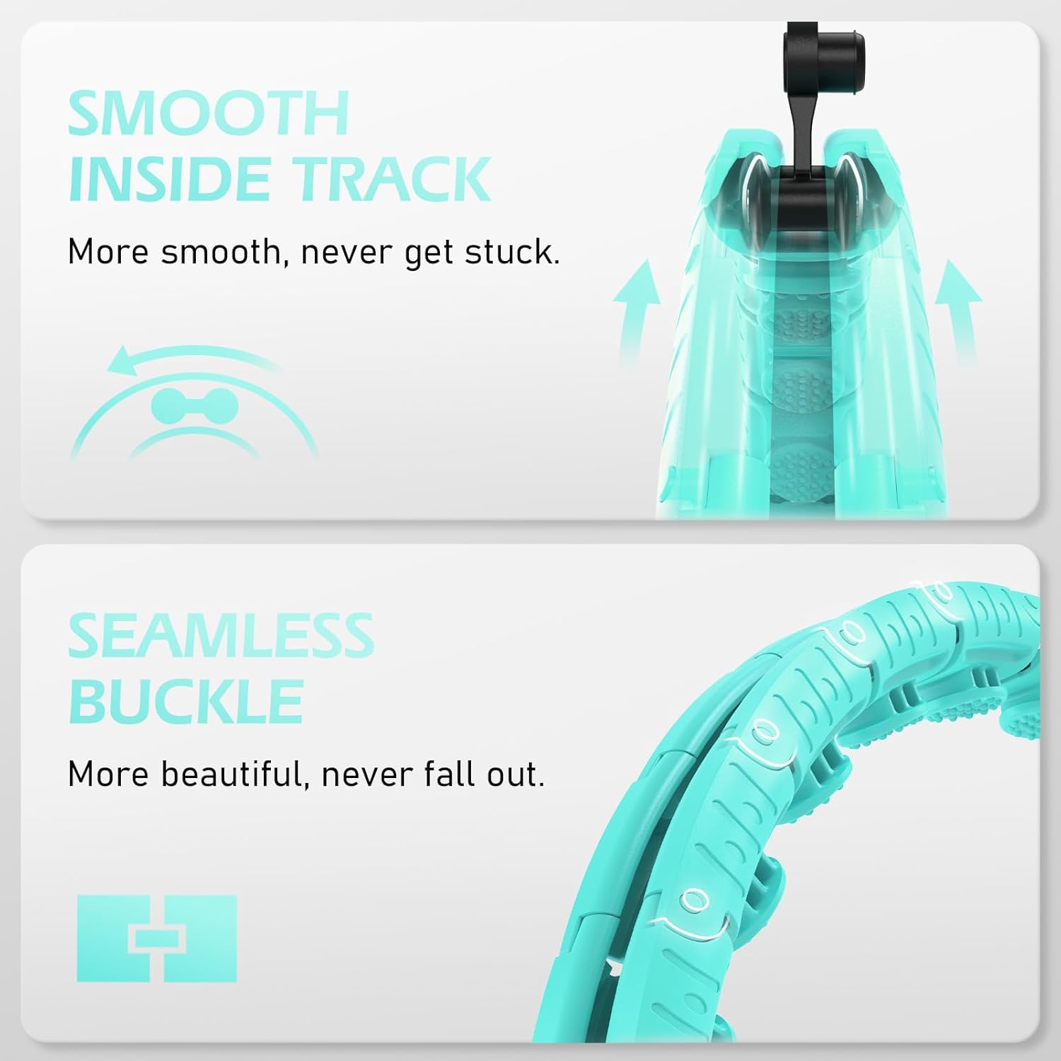 We have improved on the problems of noisyćstuck and fall apart with previous exercise hoops and make this product